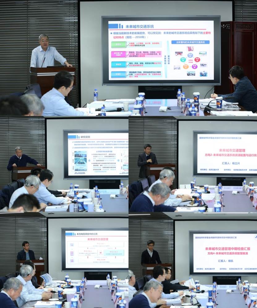 项目负责人高自友教授汇报了项目总体进展,方向负责人北航黄海军、北交大杨立兴和吴建军以及北京交研院缐凯分别介绍了各方向的中期成果。经专家组充分讨论和综合评议,一致认为项目严格按照计划书扎实推进,取得了一系列创新性研究成果,中期检查获评优秀。